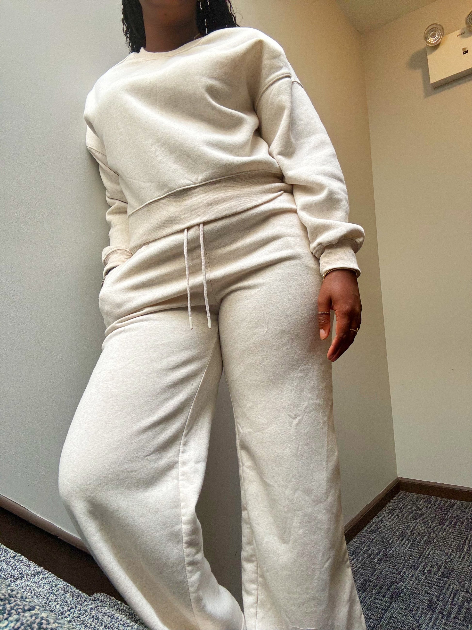 Wrap yourself in comfort with the Cozy Oatmeal Lounge Set. This playful duo features a snug crew sweatshirt and wide-leg sweatpants with a drawstring waist, blending ease and style perfectly. Whether you're chilling at home or stepping out for a relaxed day, this set keeps you cozy and effortlessly cool.
